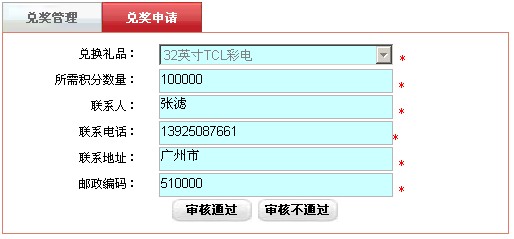 然后,于礼品兑奖管理中选中会员已提交礼品兑换的申请表单,确认并审批通过申请表单。审批通过同时系统自动减除申请会员对应积分数量;